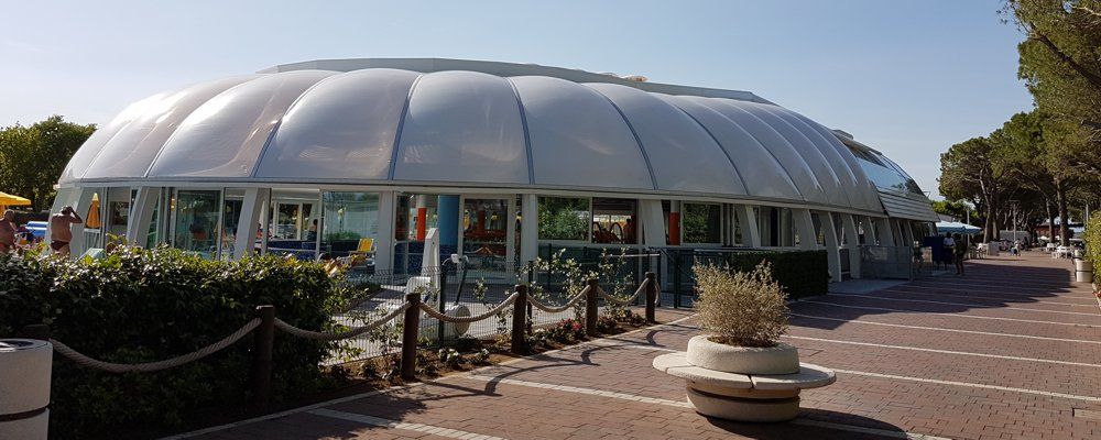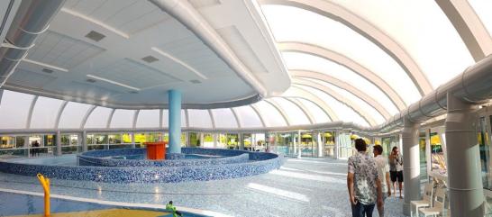 Sistema costruttivo: struttura metallica con pareti interne a secco e teli a bolle in ETFE